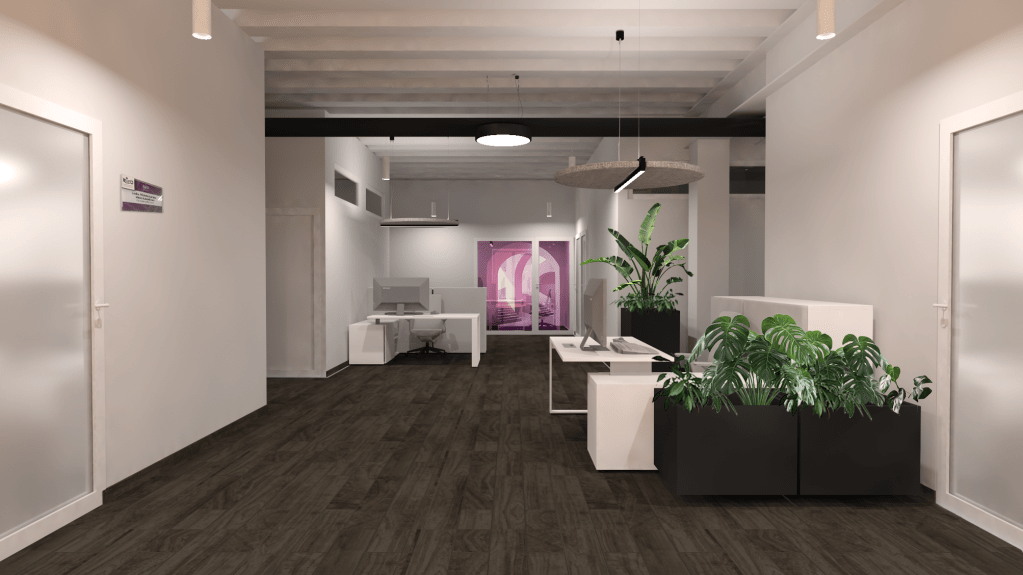 Tuvimos la oportunidad de reconfigurar y embellecer las oficinas de una institución que representa una punta de lanza en su ramo. La distribución de escritorios entre divisiones con mamparas, áreas conjuntas y privadas necesitaba un cambio.